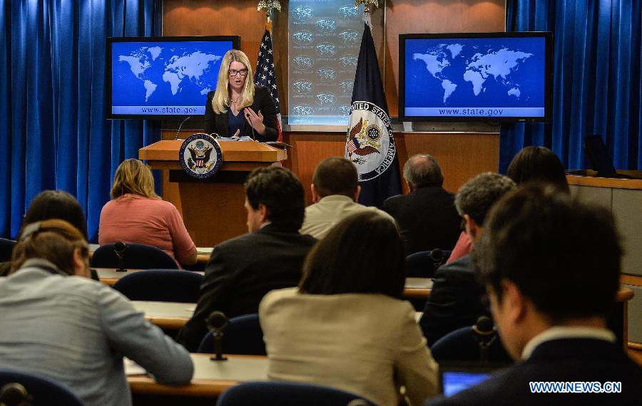 U.S. State Department spokeswoman Marie Harf speaks during daily press briefing in Washington D.C., capital of the United States, July 21, 2014. U.S. President Barack Obama on Monday called for a full, unimpeded and transparent investigation into the crash of Malaysian airliner MH17 in Ukraine. (Xinhua/Bao Dandan)