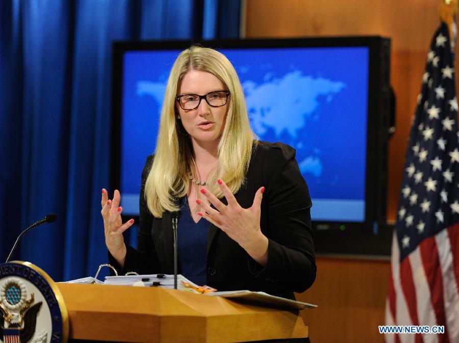 U.S. State Department spokeswoman Marie Harf speaks during daily press briefing in Washington D.C., capital of the United States, July 21, 2014. U.S. President Barack Obama on Monday called for a full, unimpeded and transparent investigation into the crash of Malaysian airliner MH17 in Ukraine. (Xinhua/Bao Dandan)
