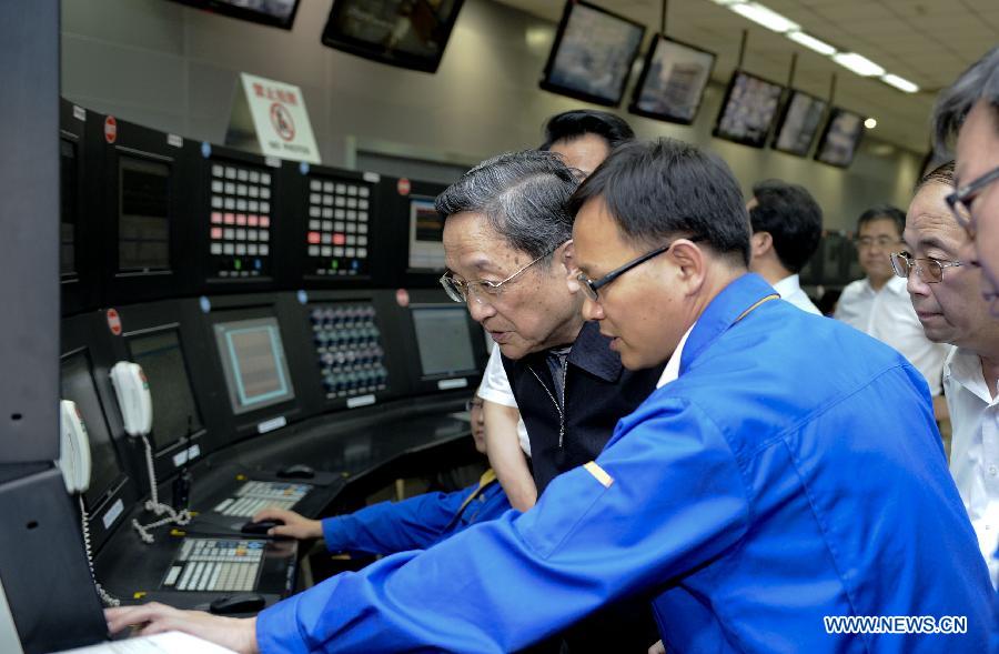 Yu Zhengsheng, chairman of the National Committee of the Chinese People's Political Consultative Conference (CPPCC), visits the Erdos branch of China Shenhua Coal to Liquid and Chemical Co., Ltd. in Erdos, north China's Inner Mongolia Autonomous Region, July 18, 2014. Yu made an inspection tour in Inner Mongolia from July 18 to 21. (Xinhua/Zhang Duo)
