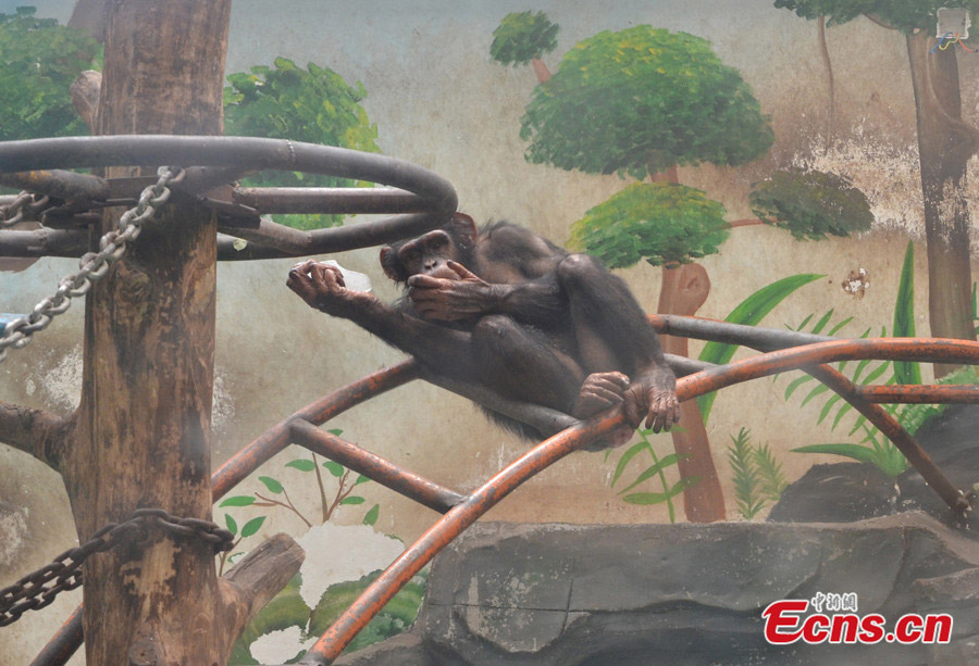 Animals are offered ice, shower, and watermelons to beat summer heat at Zhengzhou Zoo in Zhengzhou of Henan province on July 21, 2014. On Monday the city witnessed the highest temperature of nearly 40 degrees Celsius. [Photo/Liu Linzi]