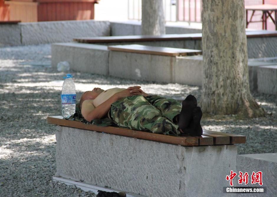 People suffer from heat waves. China's meteorological authority on Sunday issued a yellow alert for high temperatures for many regions, with temperatures expected to reach 40 degrees Celsius in some areas. (Photo/CNS)