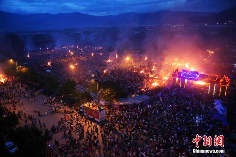People celebrate Torch Festival on July 20, 2014. Torch Festival, a traditional carnival for the Yi ethnic group, is held annually on June 24 or 25 of the lunar calendar. (CNS Photo)
