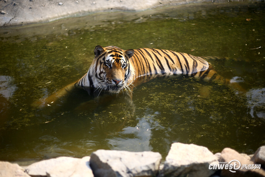 Heat waves have hit Xi'an recently. Breeders in a zoo provide green bean soup, ice cream and watermelon to animals. They've also offered air conditioners, swimming pools and cool showers to help animals remain cool in hot summer. (Photo: cnwest.com)