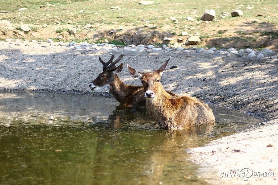 Heat waves have hit Xi'an recently. Breeders in a zoo provide green bean soup, ice cream and watermelon to animals. They've also offered air conditioners, swimming pools and cool showers to help animals remain cool in hot summer. (Photo: cnwest.com)