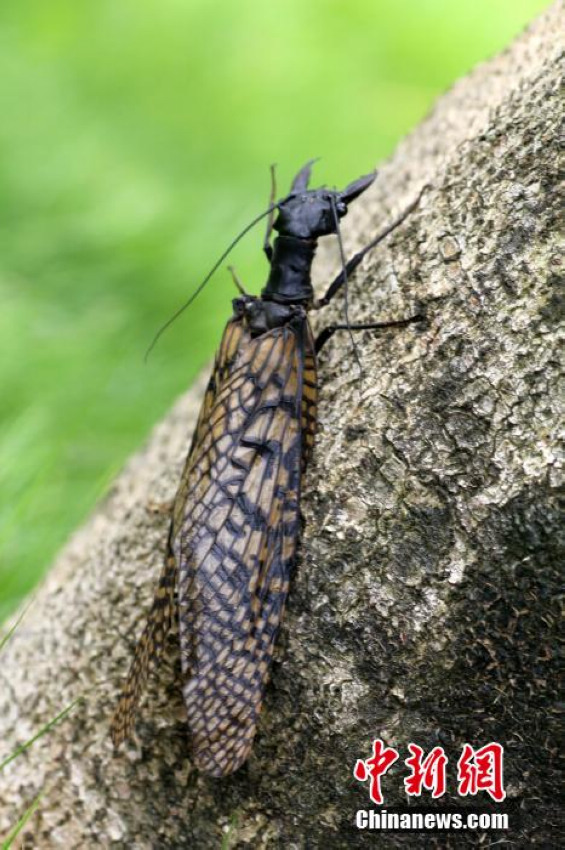 | Photo shows an insect specimen which is discovered in Qingcheng mountain of Chengdu, Sichuan province in the middle of July. With its wingspan measured as 21 centimeters, the insect is supposed to be the largest aquatic insect in the world. (Photo/CNS) |