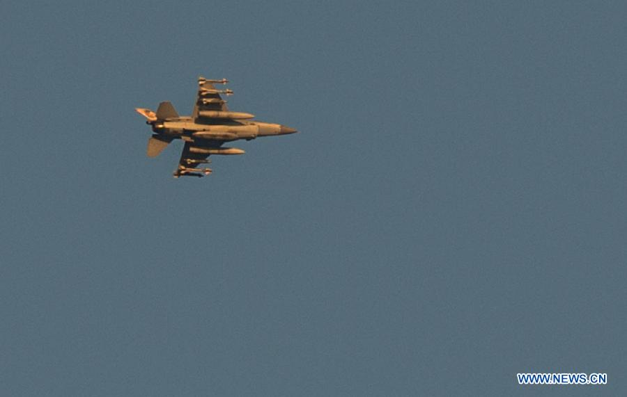 An Israeli Air Force (IAF) aircraft flies over Ashdod, a southern Israeli city bordering the Gaza Strip, on July 22, 2014, the 15th day of Operation Protective Edge. As UN Secretary-General Ban Ki-moon is in Israel to broker a peace between the Jewish state and the Islamist Hamas movement, Israel army said it has no intention to cease its Gaza offensive before rooting out the "terror tunnels" that Hamas is using to sneak into Israel. (Xinhua/Li Rui)