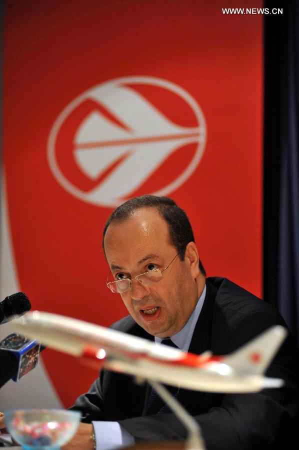 | This file photo taken on on July 6, 2011, shows CEO of Algerian national airline company Air Algerie, Mohamed Salah Boultif speaks during a press conference in Algiers, capital of Algeria. Air Algerie said on Thursday that it lost contact with a plane 50 minutes after the aircraft took off from Ouagadougou, capital of Burkina Faso, en route to Algiers. (Xinhua/Mohamed Kadri) |