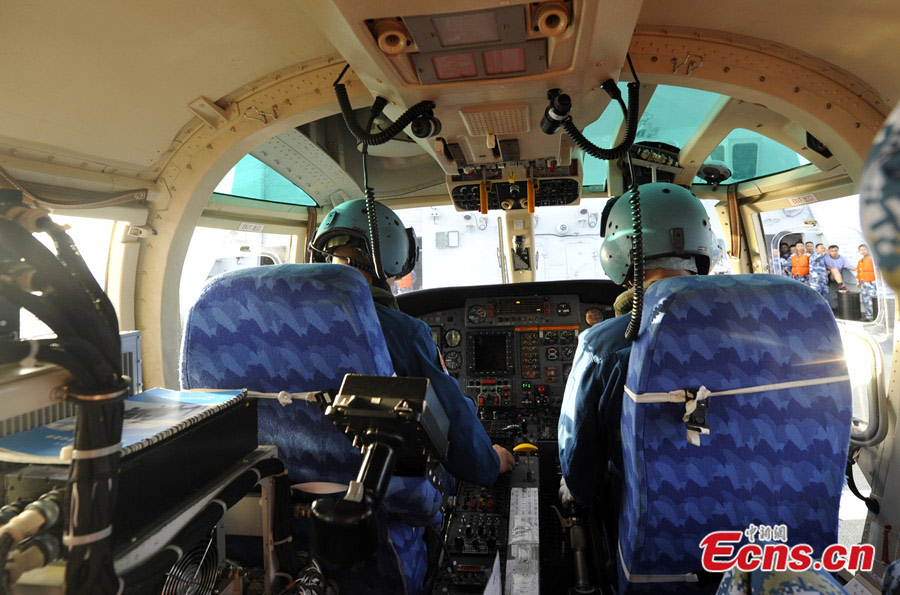 China's ship-borne helicopter is seen during the Rim of the Pacific (RIMPAC) multinational naval drill. China's navy exchanges copter landing experiences with other participating countries in the drill. [Photo: China News Service / Mao Jianjun]