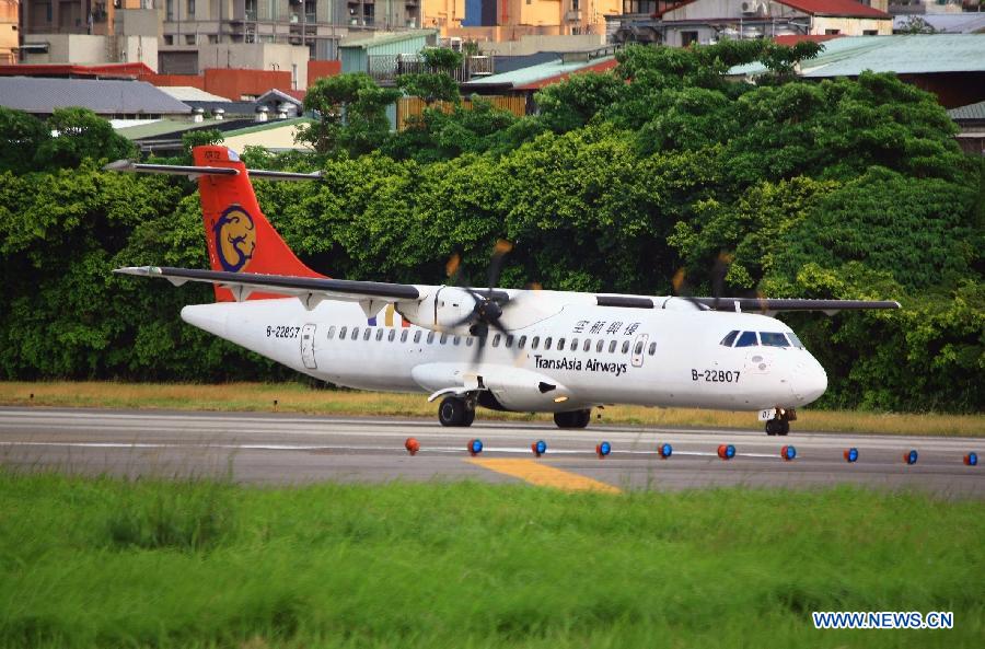 | This file photo taken in July, 2010 shows an ATR-72 airliner of Taiwan's TransAsia Airways. An ATR-72 airliner which carried 54 passengers and four crew members was flying from Kaohsiung to Penghu, where it made an emergency landing, on July 23, 2014. (Xinhua) |