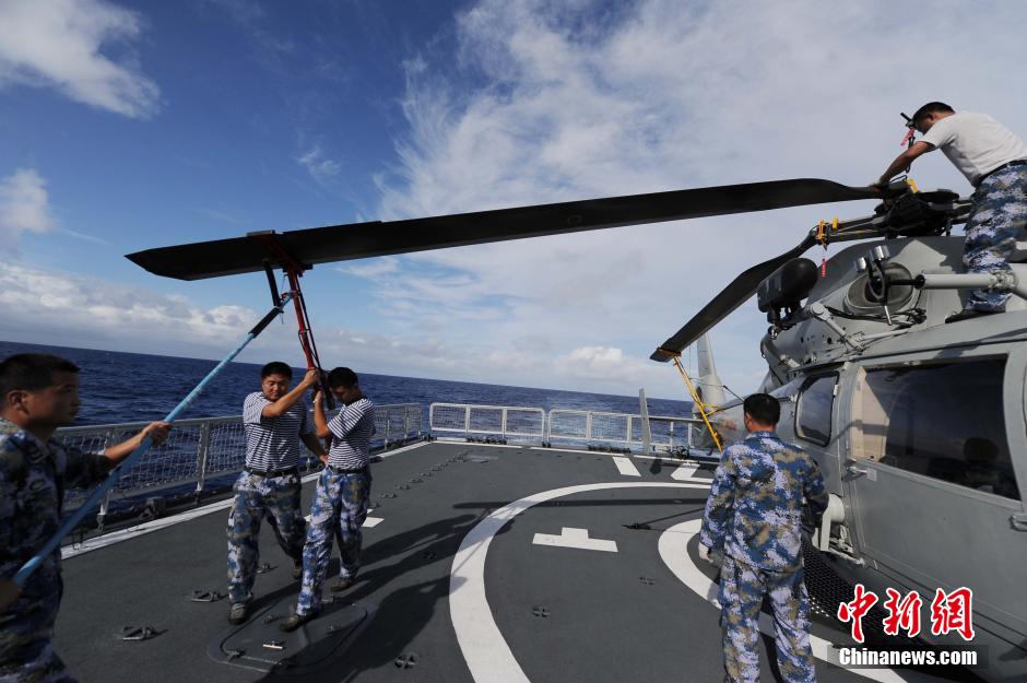 | Chinese ship-borne helicopters participate in multinational landing operations during the Rim of the Pacific Exercise (RIMPAC) of 2014. (Photo/Chinanews.com) |