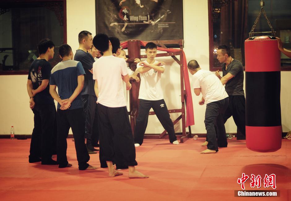 | Wing Chun master Tu Tengyao teaches students in southwest China's Chongqing. He has more than 80 students from all walks of life, with the age varied from 8 to 50. (Photo/CNS) |