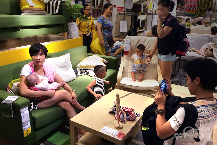 People come to IKEA to enjoy air conditioning in Guangzhou on July 3, 2014. (Photo/CNTV)