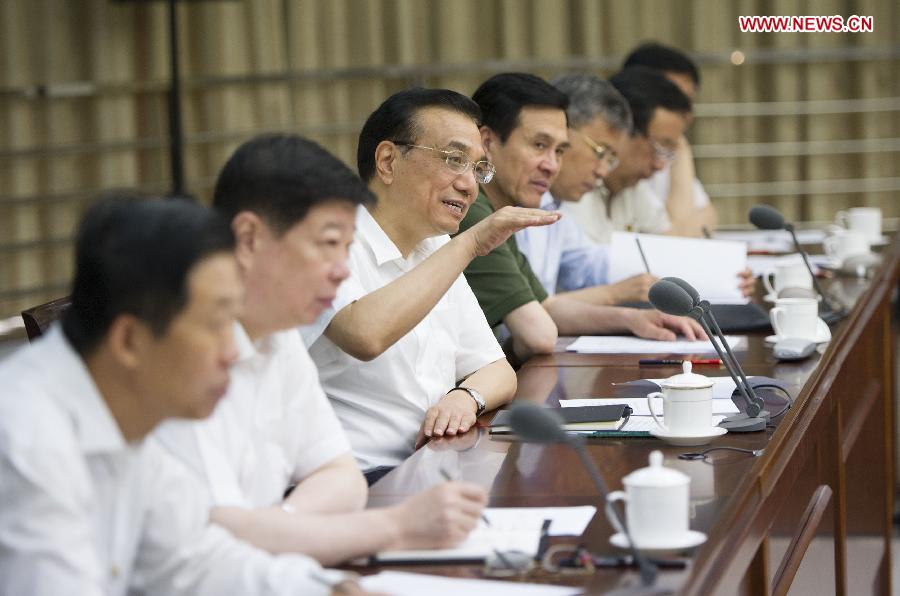 | Chinese Premier Li Keqiang (3rd L) attends a symposium with heads of some newly-registered enterprises in Jinan, capital of east China's Shandong Province, July 25, 2014. (Xinhua/Huang Jingwen) |
