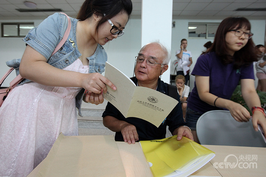 68-year-old Tamada Shigeki registers in Shandong University to start the master study in Chinese in Jinan, Shandong province on Sept. 5, 2013. (Photo/CNTV)