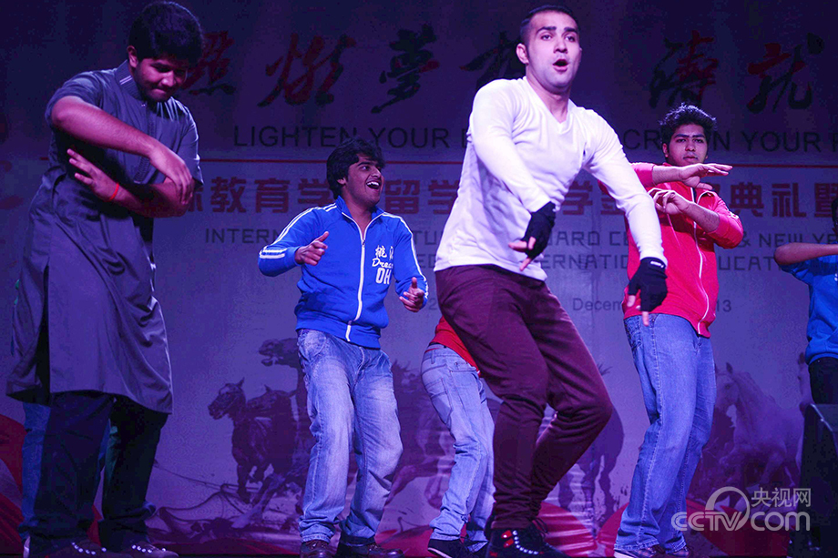Pakistani students perform modern dance at the Christmas party in China University of Petroleum in Qingdao, east China's Shandong province on Dec. 25, 2013. (Photo/CNTV)