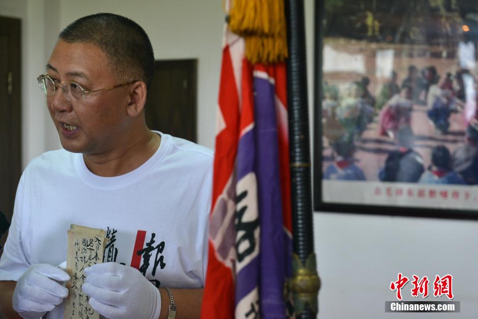 Sichuan Jianchuan Museum releases nearly 500 pieces of objects which witnessed Japanese invaders' crime in China during WWII, On July 27. The objects include the Japanese invaders' letters, diaries, statements, documents, the pictorial propaganda record and domestic magazines. Some of the important historical documents were collected from Japan by curator Fan Jianzhong, who had been in Japan for several times. Many evidences were exposed to public for the first time. (Photo/CNS)