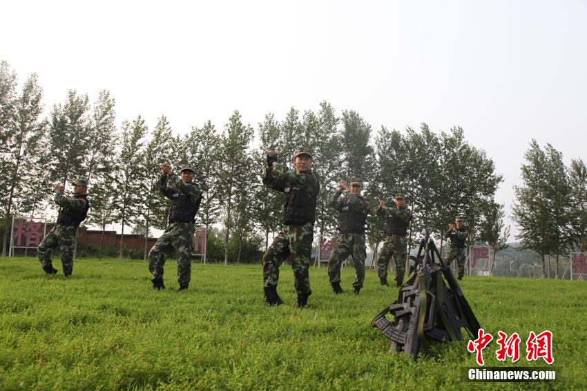 On July 29, armed police officers and soldiers in Jilin dance to the catchy tune of "Little Apple" to release pressure and enrich their cultural life. These soldiers are responsible for disposal of terrorist attacks, handling emergencies and city patrol. By the Chopsticks Brothers, "Little Apple" is one of the most popular songs in China. (CNS/Cang Yan)