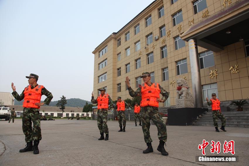 On July 29, armed police officers and soldiers in Jilin dance to the catchy tune of "Little Apple" to release pressure and enrich their cultural life. These soldiers are responsible for disposal of terrorist attacks, handling emergencies and city patrol. By the Chopsticks Brothers, "Little Apple" is one of the most popular songs in China. (CNS/Cang Yan)