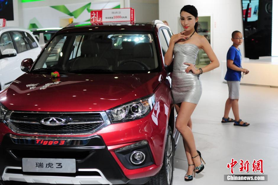 Photo taken on July 30 shows the beautiful model at Xinjiang International Automobile Exhibition in northwest China's Xinjiang Uygur Autonomous Region. (Photo/CNS)