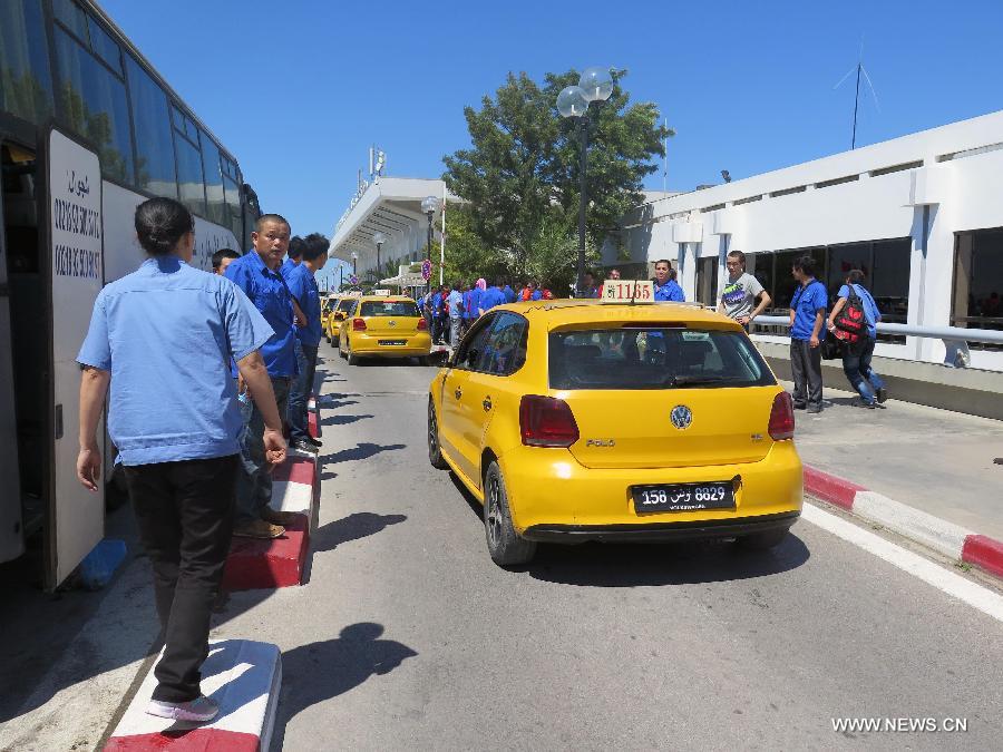 Chinese employees of a steel plant arrive at the Carthage Airport in Tunis, Tunisia, Aug. 1, 2014. 121 Chinese nationals, who had been evacuated from violence-hit Libya, reached Tunisia early Friday, the Chinese Embassy said. They traveled to the Tunisian capital, from where they would be flown home. (Xinhua/Pan Xiaojing)