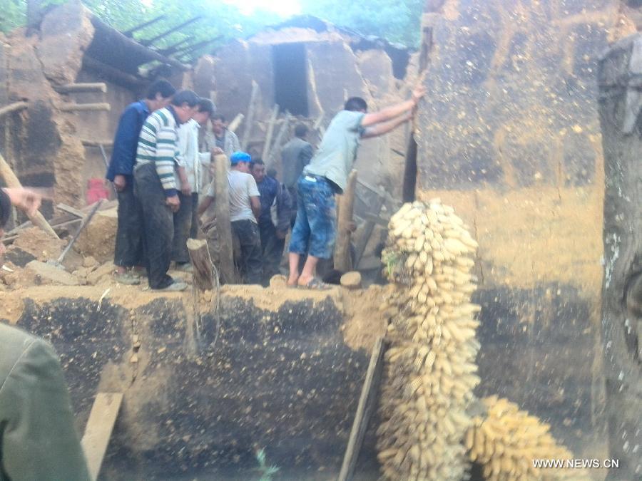 This photo taken by cellphone on Aug. 3, 2014 shows rescuers search for buried people in Qiaojia County after an earthquake in its nearby Ludian County of Zhaotong City in southwest China's Yunnan Province. A 6.5-magnitude earthquake jolted Ludian County at 4:30 p.m. Sunday (Beijing Time), said the China Earthquake Networks Center (CENC). By 6:50 p.m. Sunday, 26 have been killed and two are still missing in Qiaojia County. (Xinhua)