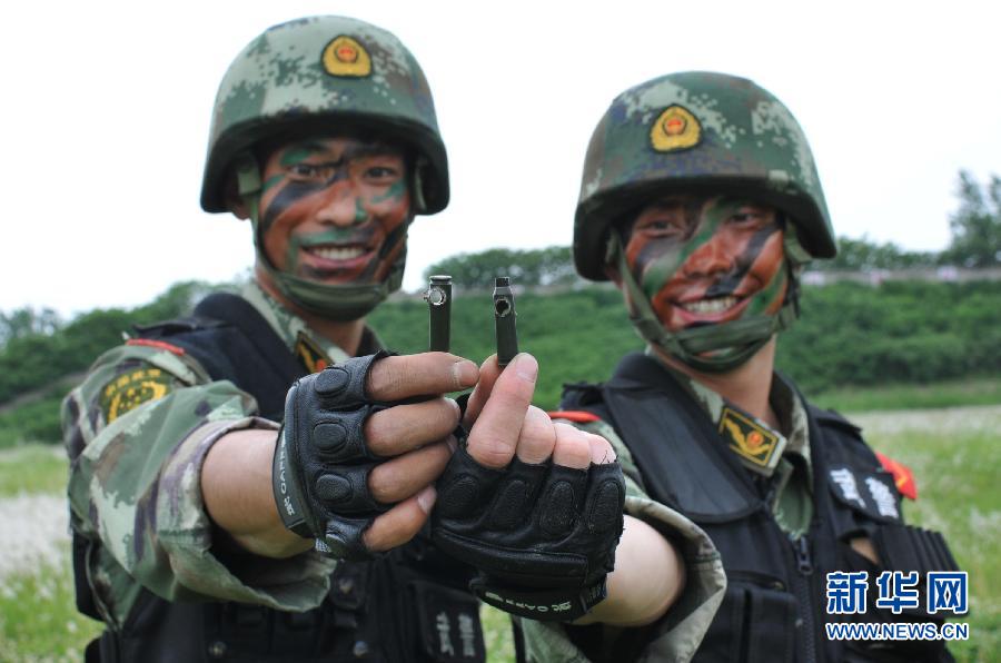 Wang Xiaoshuai, 24, and Li Liansheng, 22, are snipers serving in Anhui Armed Police Division. The two have done very good jobs together in dealing with emergency situations and shooting competitions. (Photo/ Xu Wei)
