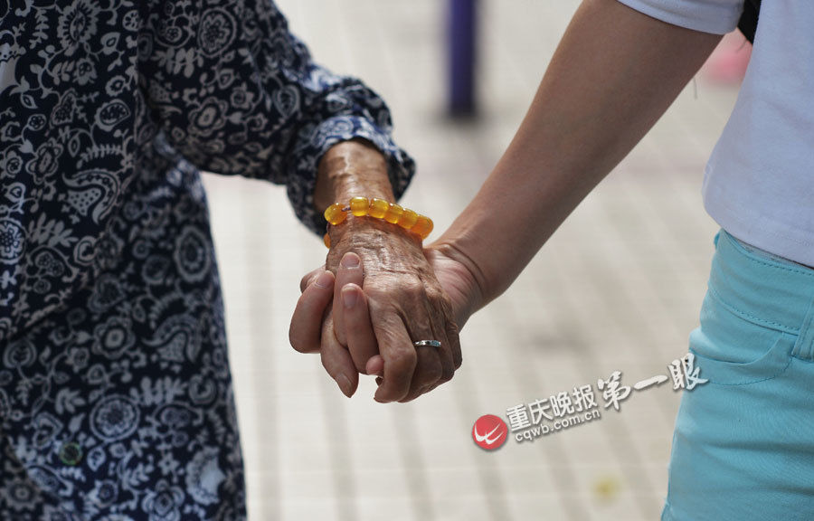 Huang Lihua, a post-90s girl, goes to work with her 88-year-old grandma, July 17, 2014. (Photo/cqwb.com.cn)