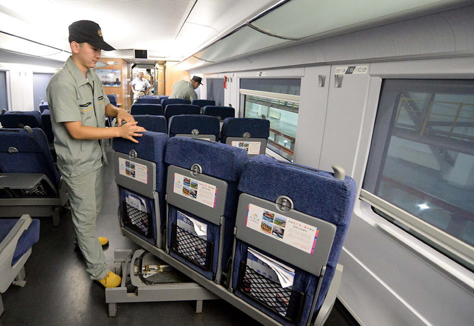 The technicians check the seat status. Every night, they need to check more than 10, 000 seats and 5,000 service facilities. (Xinhua/Zhu Zheng)