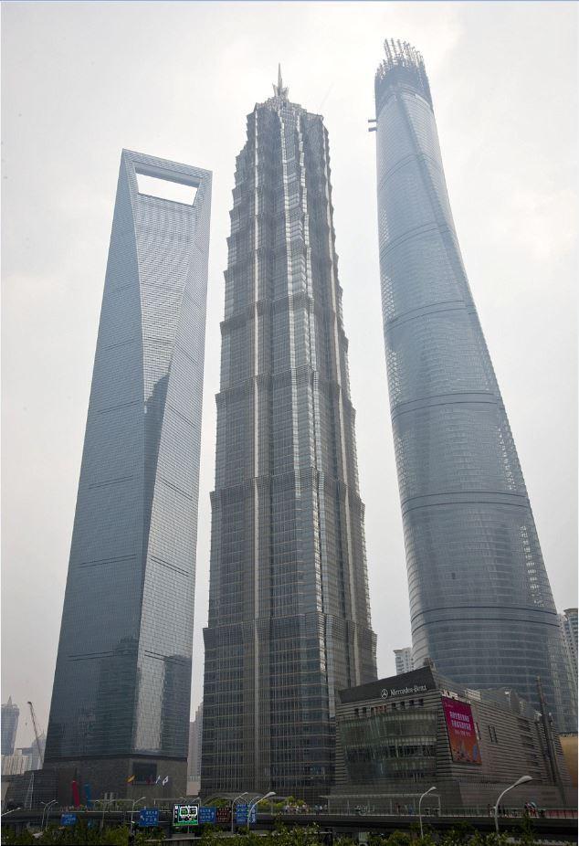 Workers celebrate the completion of Shanghai Tower