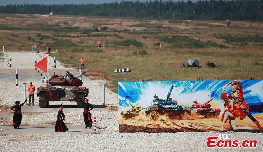 | A tank biathlon championship is held in the Alabino firing range of Moscow region, Russia on August 4, 2014. (CNS/Jia Jingfeng) |