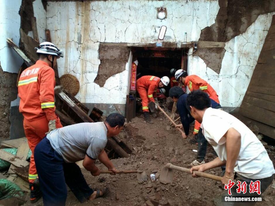 Firefighters rescue a child from the ruins. (Provided by the fire department of Yunnan province)