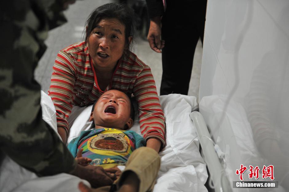 A wounded child is treated in hospital on August 4, 2014. (Chinanews/Ren Dong)