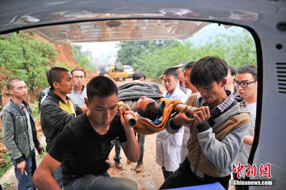 Wounded villagers wait for the ambulance on August 4, 2014. (Chinanews/Ren Dong)