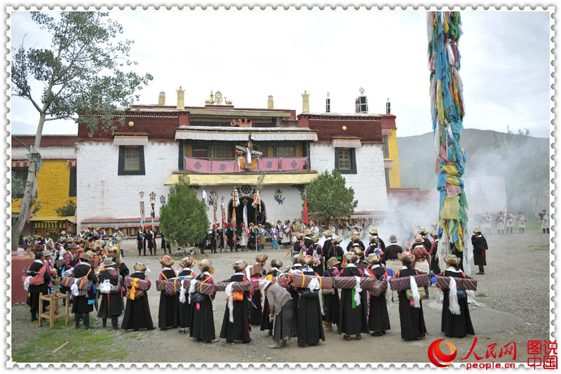 “Ongkor” in Tibetan means marching around the farm land. With a history of more than 1500 years, it is a traditional celebration of good harvest. The photo shows the Ongkor Festival celebrations in Zhanang County, Shannan Prefecture of Tibet. (People.cn)