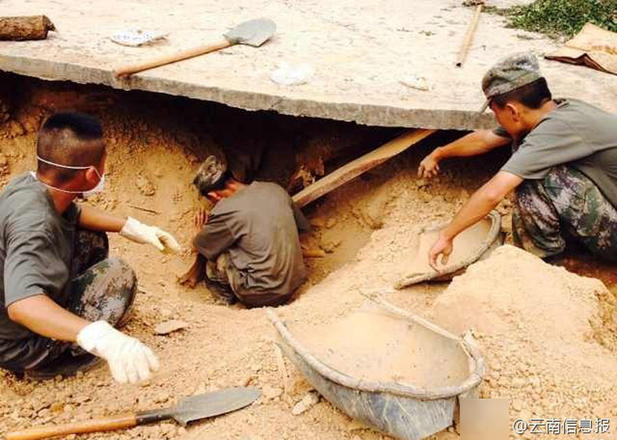 The rescuers enter the hole at 3:03 p.m. on August 5, 2014. (Photo/ynxxb.com)