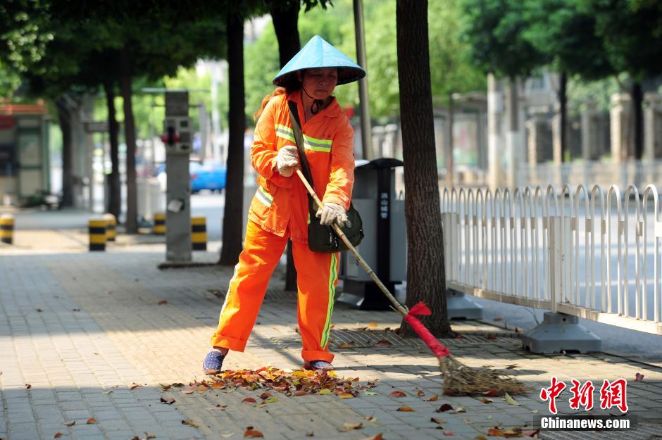 Chen Suozhen, a sanitation worker is working in Wuhan August 5th, 2014.