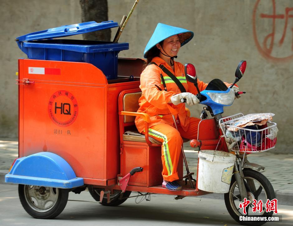 Chen Suozhen, a sanitation worker is working in Wuhan August 5th, 2014.