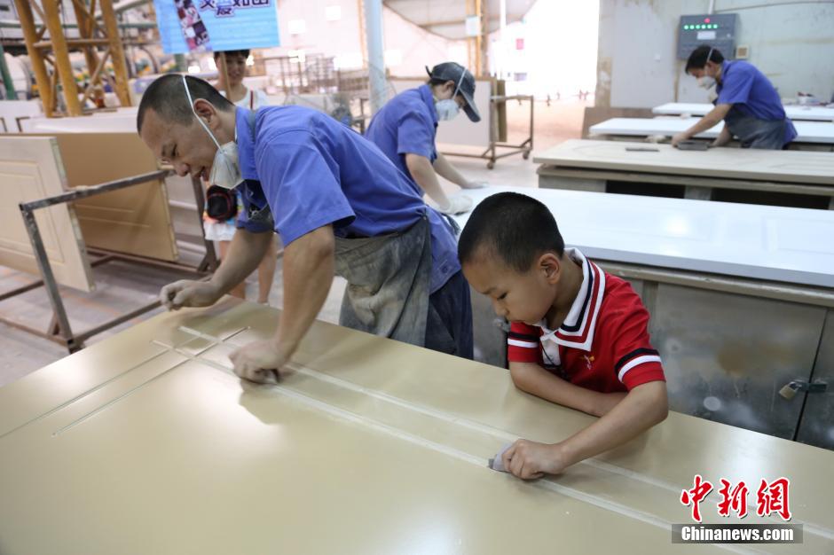 Children in Chongqing spend "Father's Day" together at dads' work places on Aug. 7, 2014. The pronunciation of the number "eight" is close to the "father" in Chinese language, which is why August 8th is considered as the new "Father's Day". The activity "Where are we going, Dad?" was recently held in Fuling, Chongqing. Children went to their fathers' work places and had an unforgettable "Father's Day" with their dads.