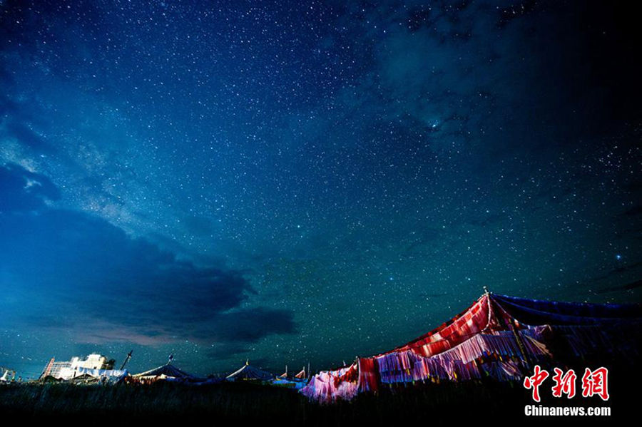 Waqie pagoda forest combined with countless prayer flags form the most fascinating scenery in a summer night in Hongyuan County of Aba (Ngawa) Autonomous Prefecture, Sichuan province. (Chinanews/Yang Yaguang)