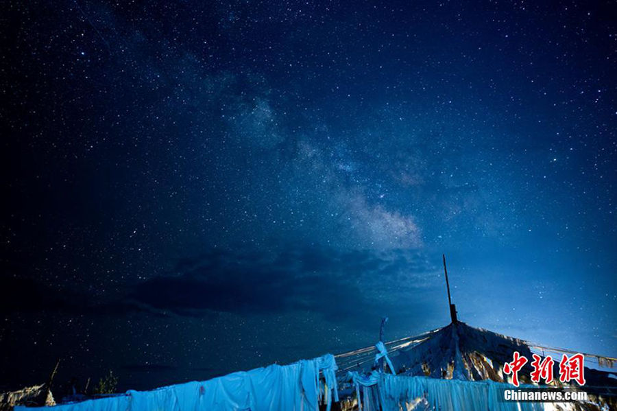 Waqie pagoda forest combined with countless prayer flags form the most fascinating scenery in a summer night in Hongyuan County of Aba (Ngawa) Autonomous Prefecture, Sichuan province. (Chinanews/Yang Yaguang)