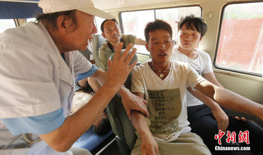 Wu Dianhua, an 80-year-old president of Jizhou Workers’ Hospital in Hebei Province, has led a medical team to help treating people in the Ludian earthquake stricken area, Aug. 10, 2014.