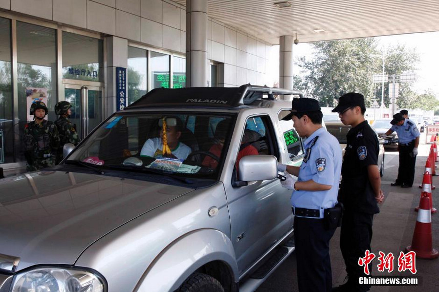 Beijing police authorities performed security checks on various vehicles entering the capital city on August 12, 2014. Since August 1, Beijing has tightened security for the Asia-Pacific Economic Cooperation (APEC) 2014 Third Senior Officials' Meeting (SOM3) and Related Meetings, which will be held in the city between August 6 and 21. (Photo/Chinanews.com)