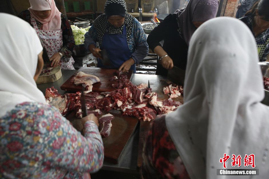 Ma Wufen, a 65-year-old ethnic Hui, called upon some 20 Muslim volunteers to distribute food and fruit to the victims and rescue workers in Ludian County, southwest China’s Yunnan Province on August 11, 2014. They prepared Muslim food for more than one thousand people and sent the food to Longtoushan Town, the epicenter of the Ludian earthquake. Starting from August 5, they’ve been spending more than 5,000 yuan every day on preparation of the relief food and all their money comes from donations by people of different ethnic groups such as the Muslim communities. (Chinanews.com/ Yang Kejia)