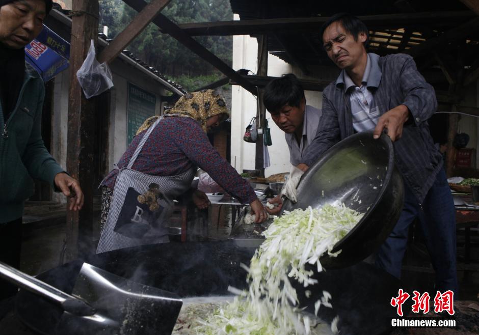 Ma Wufen, a 65-year-old ethnic Hui, called upon some 20 Muslim volunteers to distribute food and fruit to the victims and rescue workers in Ludian County, southwest China’s Yunnan Province on August 11, 2014. They prepared Muslim food for more than one thousand people and sent the food to Longtoushan Town, the epicenter of the Ludian earthquake. Starting from August 5, they’ve been spending more than 5,000 yuan every day on preparation of the relief food and all their money comes from donations by people of different ethnic groups such as the Muslim communities. (Chinanews.com/ Yang Kejia)