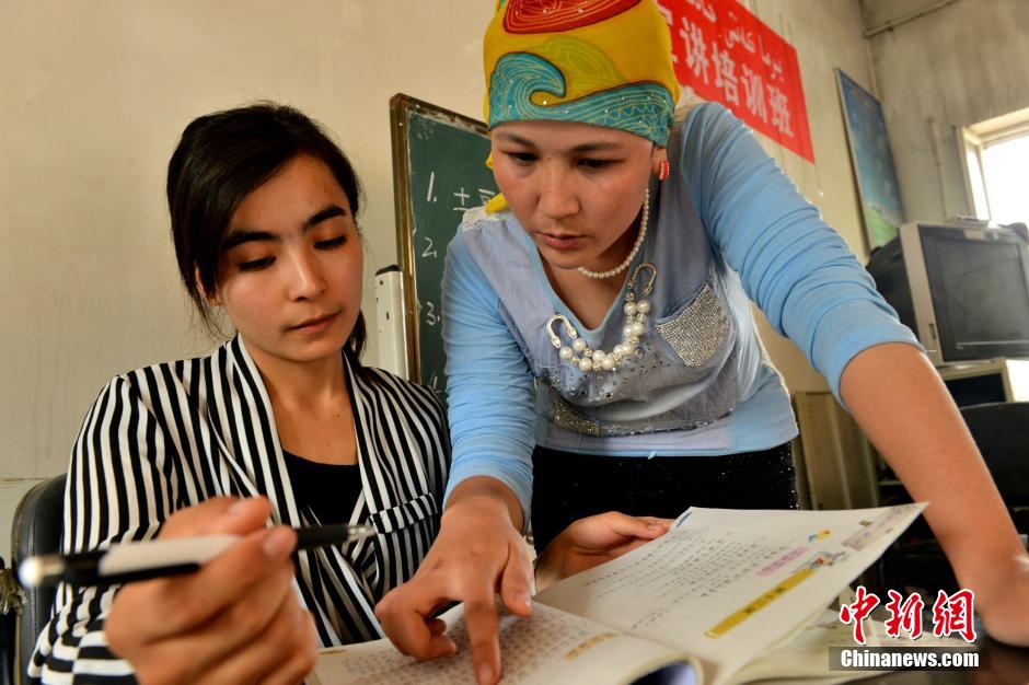 Ayturrem prepares lessons with Ayguzalay. (Chinanews/Du Zhao)