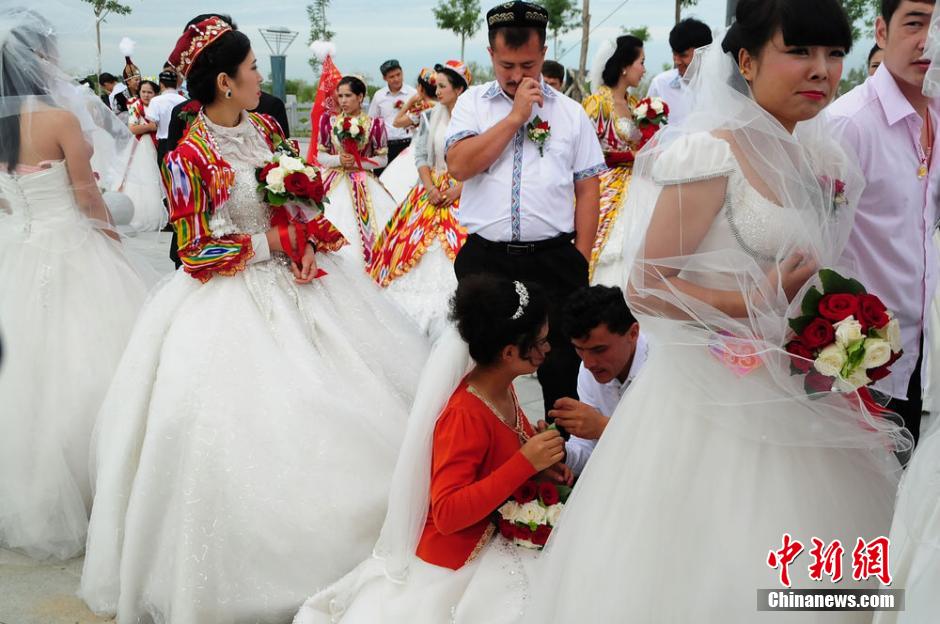 A group wedding is held for 60 couples in Yining