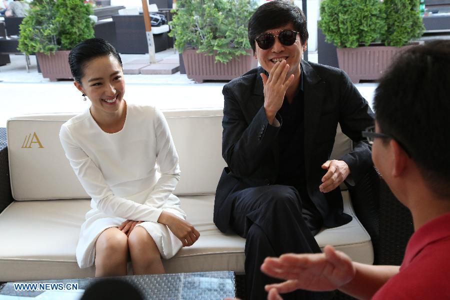 | Chinese director Diao Yinan (R) and actress Kwai Lun-mei speak during an interview with Xinhua News Agency in Sarajevo, Bosnia and Herzegovina, on Aug. 20, 2014. "Black Coal, Thin Ice", a Berlin Gold Bear winner, is in open air program in the ongoing 20th Sarajevo Film Festival. (Xinhua/Haris Memija) |