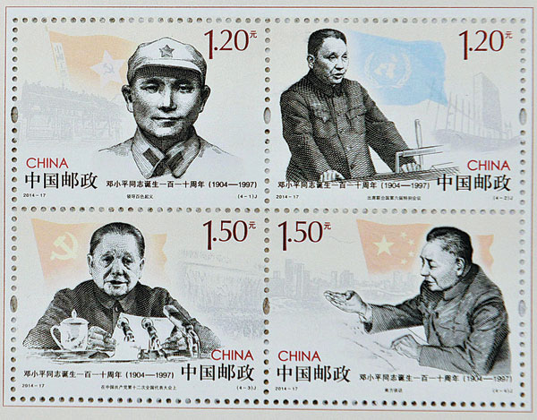 | China Post will issue a set of stamps on Friday marking the 110th anniversary of the birth of former leader Deng Xiaoping. Long Wei / For China Daily |