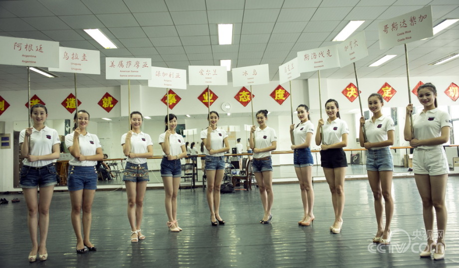 College girls selected as the guides at the opening ceremony of YOG (Youth Olympic Games) receive training in Nanjing. They became the beautiful landscape during the event. (Photo/CNTV)