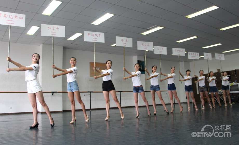College girls selected as the guides at the opening ceremony of YOG (Youth Olympic Games) receive training in Nanjing. They became the beautiful landscape during the event. (Photo/CNTV)